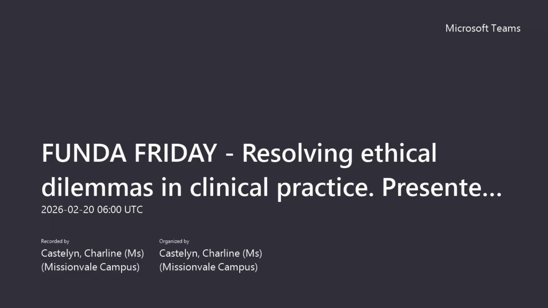 Funda Friday Resolving ethical dilemmas in clinical practice Dr Kooverjee