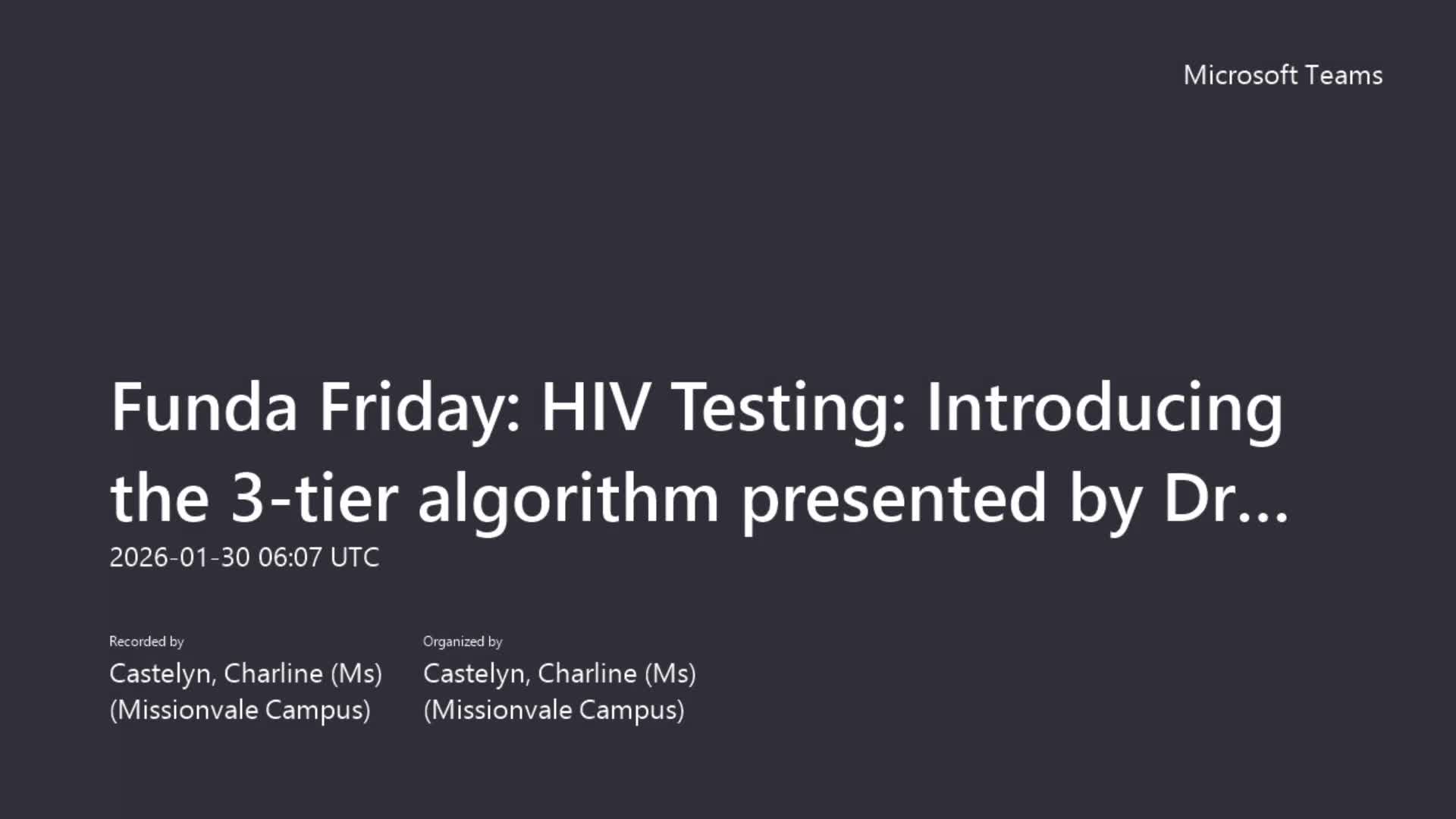 Funda Friday HIV Testing Introducing the 3-tier algorithm by Dr Madeleine Muller-20260130
