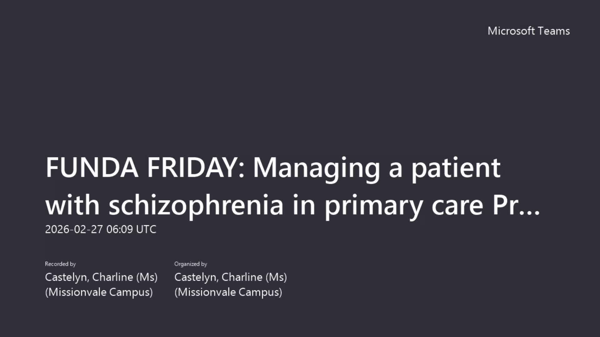 Funda Friday: Managing a patient with schizophrenia in primary care Dr Madeleine Muller
