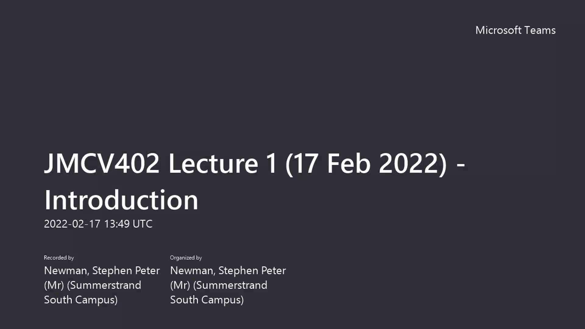 JMCV402 Lecture 1 (17 Feb 2022) - Introduction