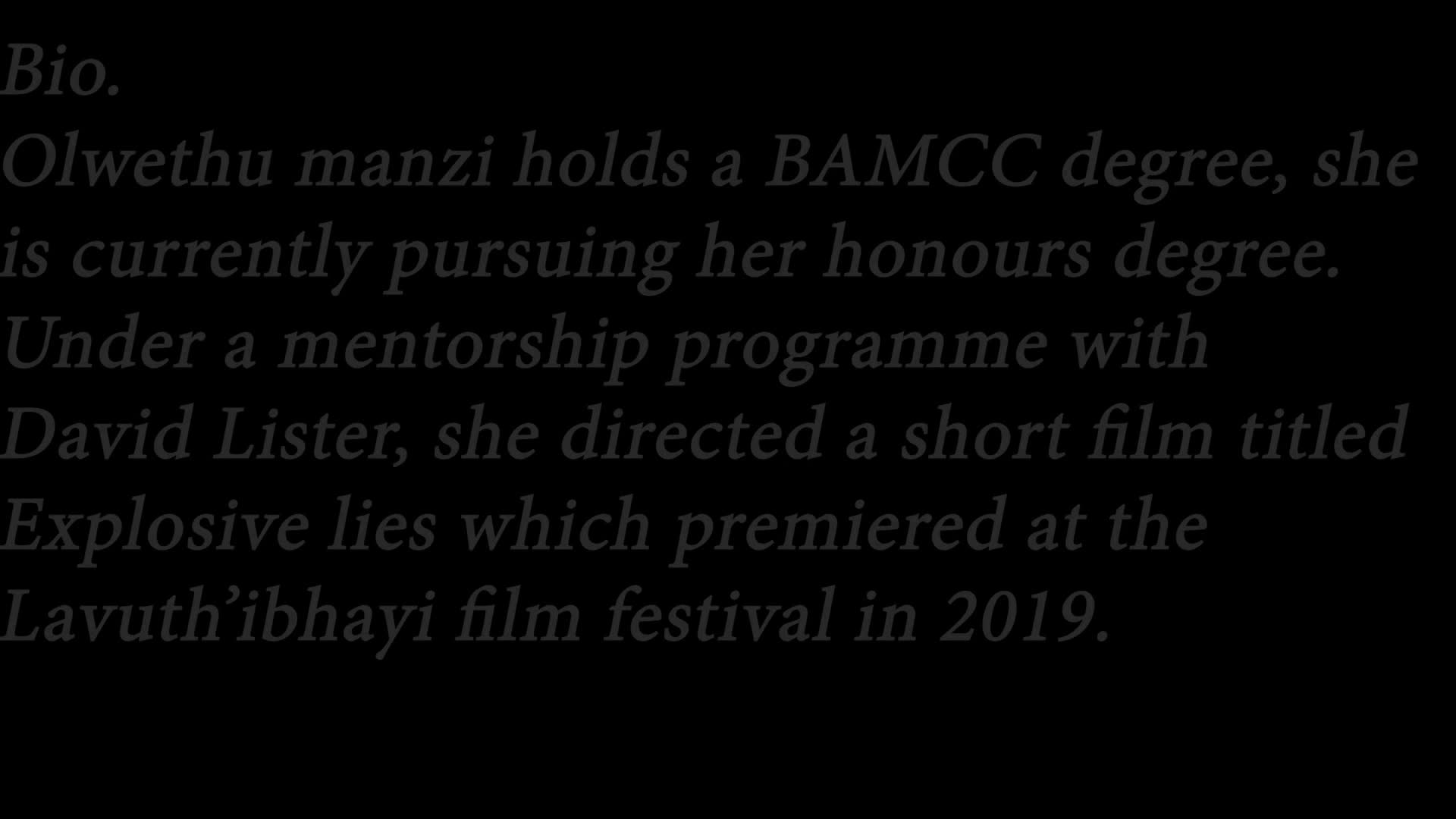 Drawing on a self-reflexive documentary approach, a student filmmaker uses her experience with gender-based violence to poignantly highlight the fears and anxieties that most women experience in South Africa.